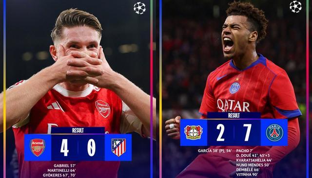 其中頗受矚目的兩場較量,阿森納坐鎮(zhèn)主場4-0碾壓馬競,巴黎客場7-2狂勝勒沃庫森!