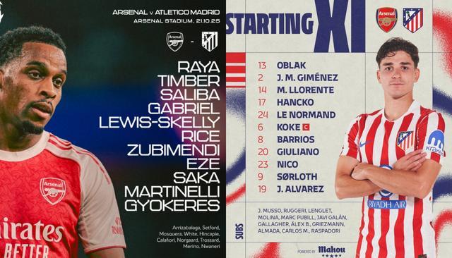 此戰(zhàn)雙方盡可能派上了全主力,哲凱賴什、薩卡、埃澤和馬丁內(nèi)利組成阿森納進(jìn)攻群。瑟洛特和阿爾瓦雷斯搭檔馬競雙前鋒,兩側(cè)是岡薩雷斯和朱利亞諾-西蒙尼。