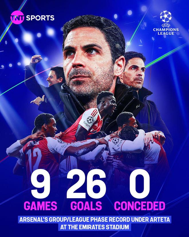 值得一提的是,阿爾特塔入主阿森納以來(lái),槍手在歐冠聯(lián)賽/小組賽階段的主場(chǎng)比賽,從未有過(guò)敗績(jī),而且0丟球。
