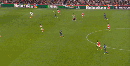 如果沒有這樣的空間和機會,他就會希望隊友繼續(xù)跑出這樣的空間和機會,只有在實在不可為的時候,才會把球簡單出掉,然后選擇自己跑位: