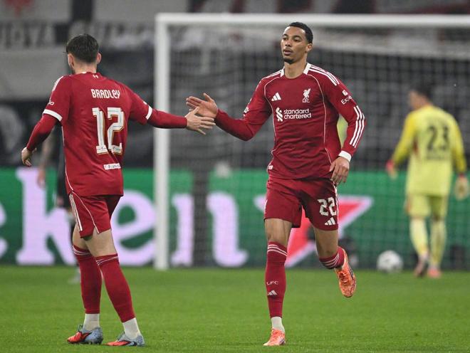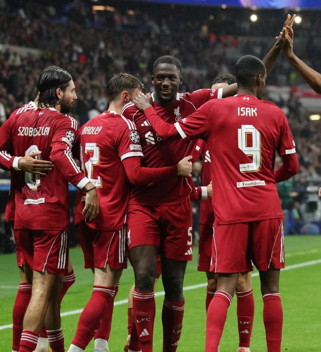 為了能夠從德意志銀行公園球場(chǎng)帶走勝利,斯洛特此役變陣442,馬馬爾達(dá)什維利鎮(zhèn)守龍門,弗林蓬、科納特、范迪克和羅伯遜構(gòu)筑防線,維爾茨、索博斯洛伊、瓊斯和加克波在中場(chǎng)一字排開(kāi),雙箭頭則是伊薩克搭檔埃基蒂克。