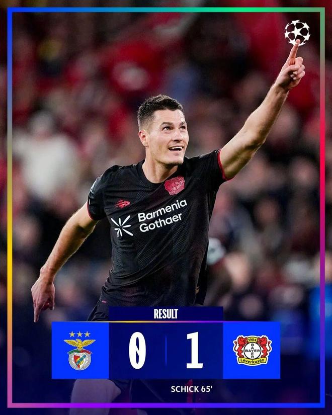 本菲卡坐鎮(zhèn)光明球場卻陷入黑暗時(shí)刻,盧克巴基奧和奧塔門迪各有一次中柱,下半場替補(bǔ)登場的??藶榭完?duì)打進(jìn)制勝球。本菲卡遭遇歐冠4連敗,勒沃庫森則迎來歐冠首勝。