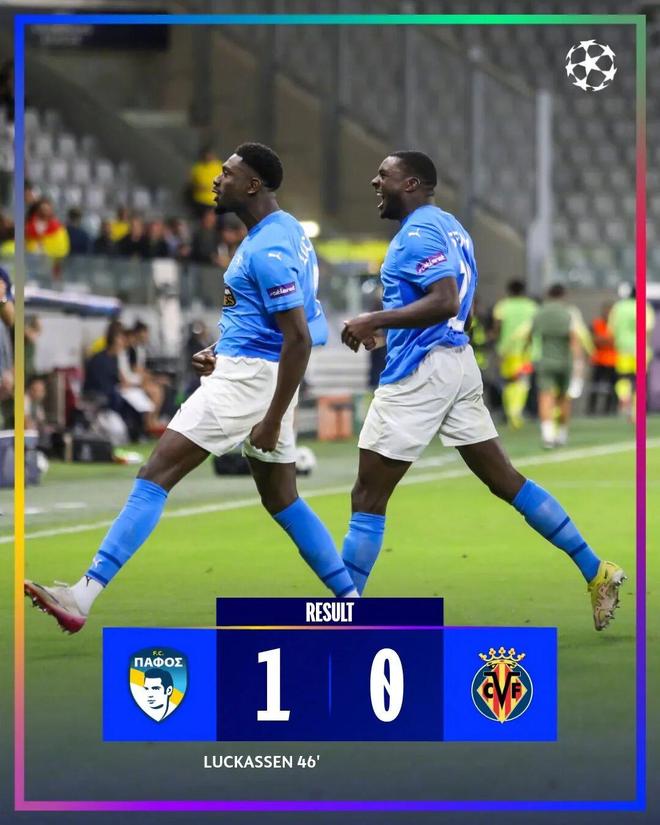 歐冠今夜見證歷史,塞浦路斯球隊(duì)帕福斯主場1-0戰(zhàn)勝比利亞雷亞爾,歐冠新軍取得了隊(duì)史正賽首勝。