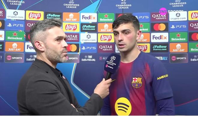 本賽季歐冠聯(lián)賽階段第6輪,巴薩主場2-1戰(zhàn)勝法蘭克福,巴薩中場佩德里賽后接受了TNT墨西哥頻道的采訪。
